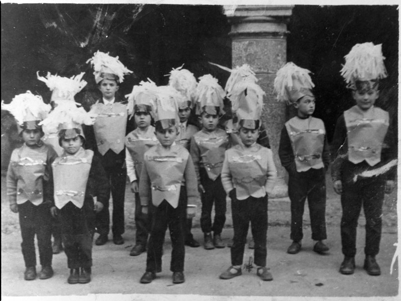 | Contenido: De izquierda a derecha: Fernando Méliz Irigoyen (de casa Méliz), Ángel Solans Ferrer (de casa Alfaro), Fulgencio Pañart Gistau (de casa Fuli), Pascual Solans Baquer (de casa Lego), Juan Montaner Pérez (de casa Mialico), José María Pañart Gistau (de casa Fuli), José Antonio Ortáriz Noguero (de casa Ortáriz), José Antonio Escalona Escartín (de casa Clareta), Pedro Solans Baquer (de casa Lego) y el hijo de un Guardia Civil. |