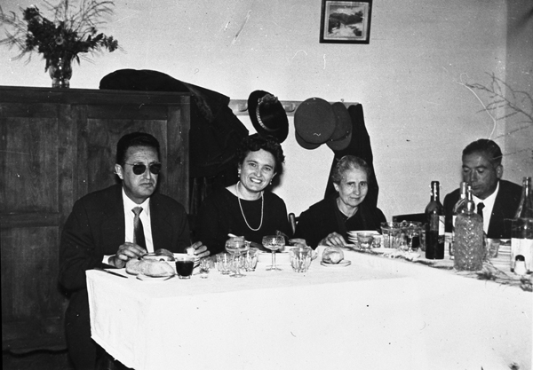 | Contenido: De izquierda a derecha, Joaquín Riazuelo y doña Amparo, maestros de Bielsa, María Bahamonte y el forestal J. Fantova. |