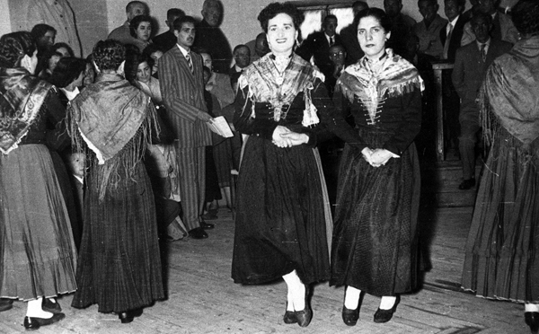 Contenido: Baile que siguió a los discurso de las autoridades. Bailando Felisa Escalona y Pilar Méliz. Al fondo, con traje a rayas, Ramón el secretario. |