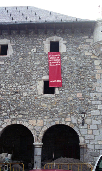 Vista parcial de la fachada y obras
