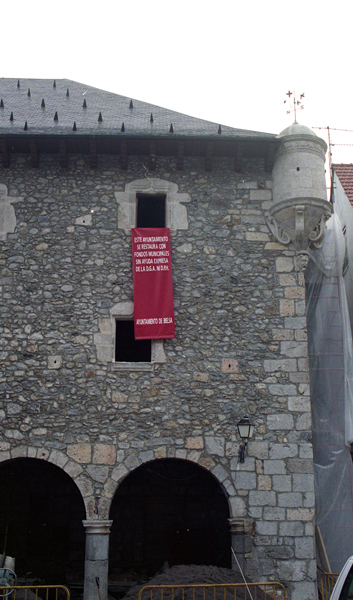 Vista parcial de la fachada y obras