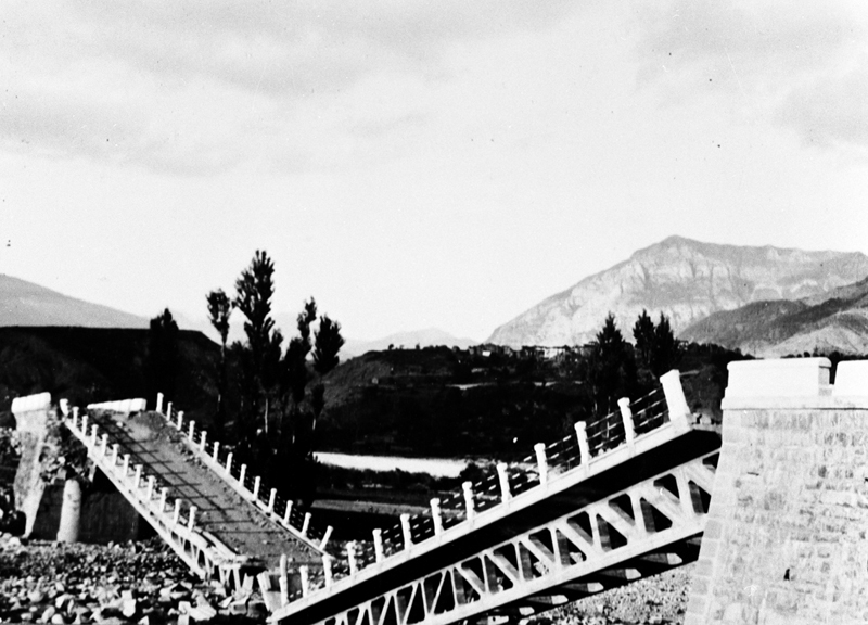 Nota: La fotografía ES-ARA-MB-004-005-000-012 muestra este mismo puente hundido y, tras él, un puente provisional construido en madera.