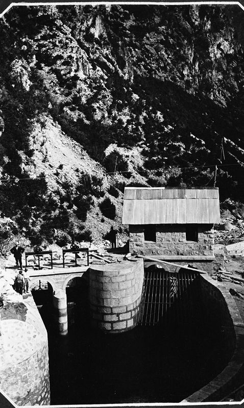 Contenido: Parecen ser las estgructuras de la desembocadura del salto de agua del canal del Cinca, en las proximidades de la central de lafortunada. \r\nEl canal y la central entraron en funcionamiento a finales de 1922. |