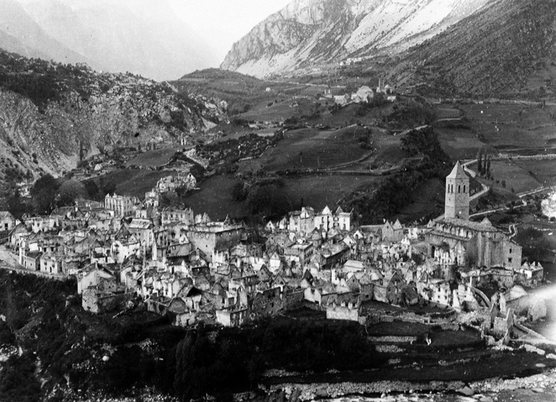 | Contenido: Bielsa en ruinas a causa de los bombardeos de la aviación franquista, tras la retirada de la 43 División. \r\nNOTA GENERAL: Es la misma imagen original que ES-ARA-MB-004-005-000-015, ES-ARA-MB-004-005-000-016 y ES-ARA-MB-004-005-000-202, fotografiada con distinta exposición. \r\n |