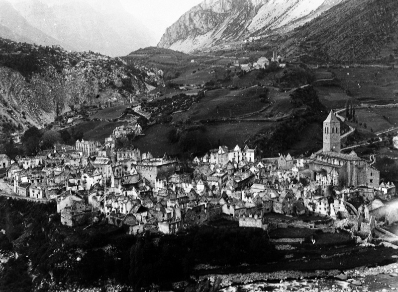 | Contenido: Bielsa en ruinas a causa de los bombardeos de la aviación franquista, tras la retirada de la 43 División. \r\n |