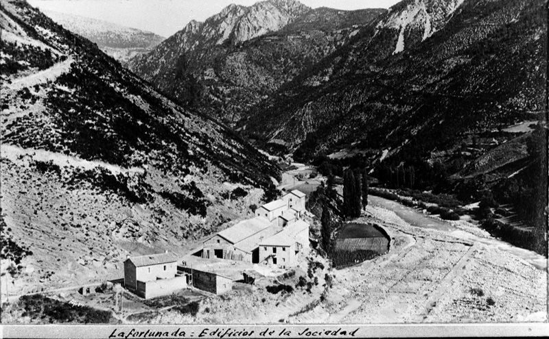 | Contenido: Fotografía tomada antes de la construcción de la central, pero cuando ya se habían levantado en Lafortunada algunos edificios auxiliares y de alojamiento. |