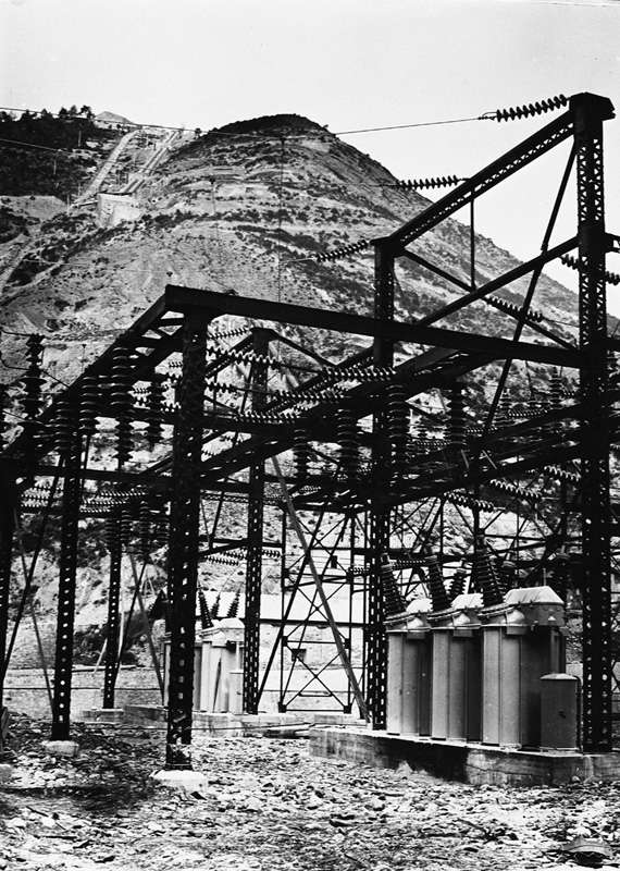 | Contenido: Se encuentra junto al edificio principal de la central de Lafortunada. En la ladera del fondo puede verse la tubería del salto del Cinca. |