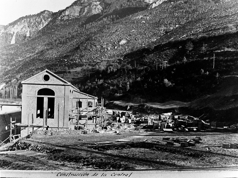 | Contenido: Edificio principal de la central de Lafortunada, en obras. Estas estaban concluidas a finales de 1922, momento en que entró en funcionamiento la central.