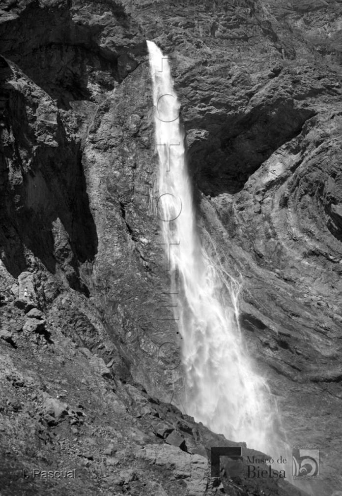 Contenido: Imágenes de Bielsa y del valle. Desde que conoció Bielsa a principios de la década de 1940, Ismael Pascual realiza fotografías de Bielsa y del valle donde se reflejan los cambios producidos por la reconstrucción del pueblo tras la guerra y por las obras hidráulicas en la cabecera del río Cinca. También realiza muchas salidas de alta montaña con un guía y en ocasiones con amigos y familiares. Ismael Pascual con el guía Antonio Noguero de casa Pichón de Bielsa y en ocasiones con amigos, hacen abundantes salidas a la alta montaña del entorno. En el Circo de Pineta, las cascadas del Marboré o del Cinca, dan nacimiento al río de este nombre. |