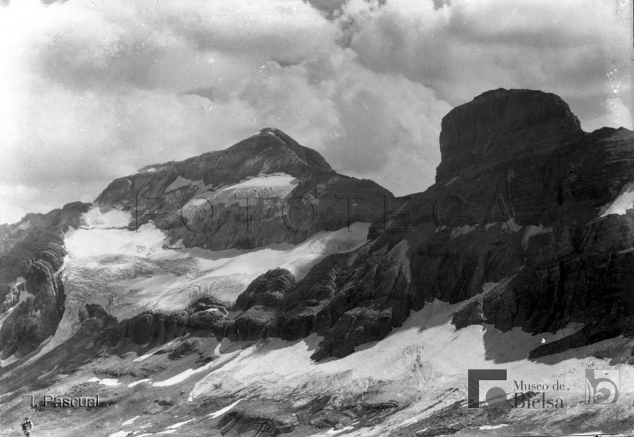 Contenido: En esta imagen el glaciar de Monte Perdido. Desde que conoció Bielsa a principios de la década de 1940, Ismael Pascual realiza fotografías de Bielsa y del valle donde se reflejan los cambios producidos por la reconstrucción del pueblo tras la guerra y por las obras hidráulicas en la cabecera del río Cinca. También realiza muchas salidas de alta montaña con un guía y en ocasiones con amigos y familiares. |