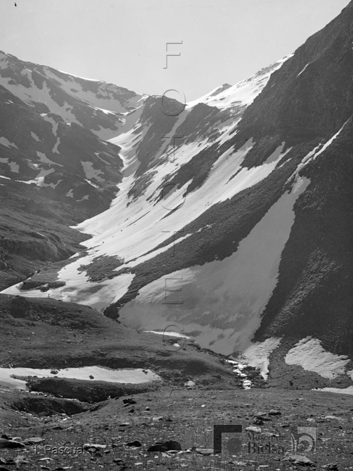 Contenido: Sus primeros destinos en la provincia fueron Torla y Bielsa, durante la década de los años 40 realiza un buen número de fotografías familiares, pero también de los pueblos, paisajes y gentes. Ya establecido en Huesca capital, sigue visitando el Pirineo en las décadas de 1950 y 60, dejando un material valioso para estudiar la evolución de los pueblos y paisajes del Pirineo. Imagen del puerto de Gistaín. |
