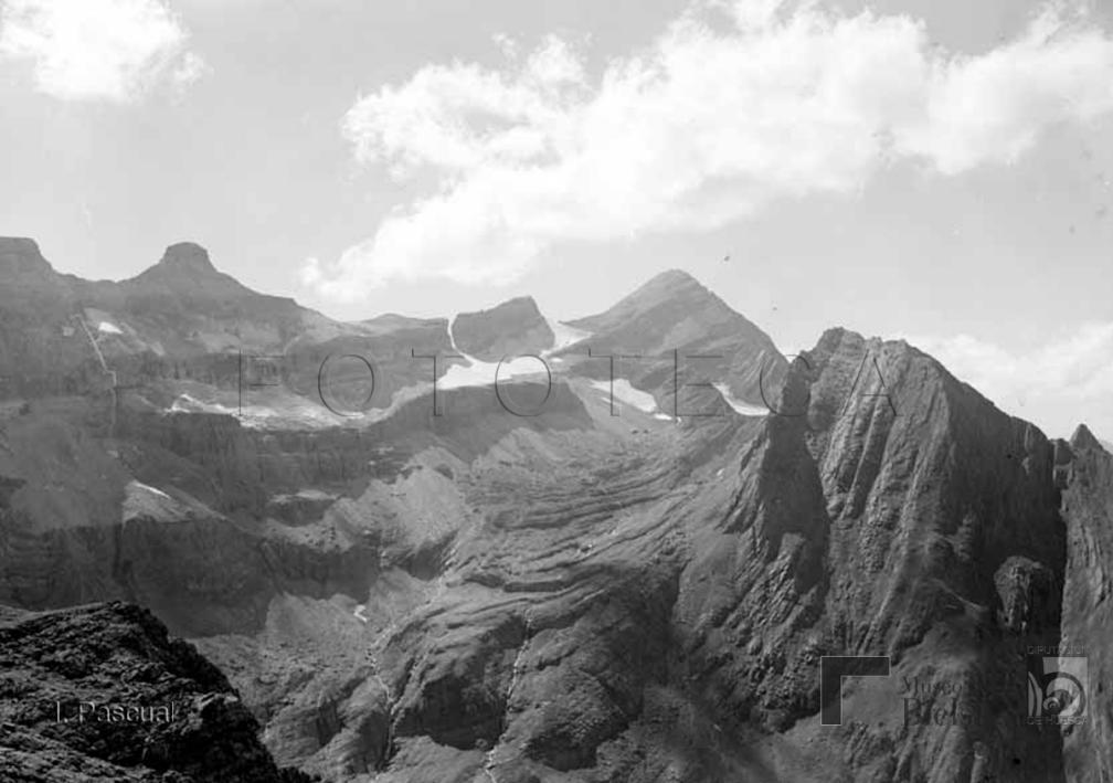 Contenido: Circo de Gavarnie, parte superior, de izquierda a derecha, Torre y Casco del Marboré, brecha de Rolando, Taillón y Sarradets. Imágenes de Bielsa y del valle. Desde que conoció Bielsa a principios de la década de 1940, Ismael Pascual realiza fotografías de Bielsa y del valle donde se reflejan los cambios producidos por la reconstrucción del pueblo tras la guerra y por las obras hidráulicas en la cabecera del río Cinca. También realiza muchas salidas de alta montaña con un guía y en ocasiones con amigos y familiares.
