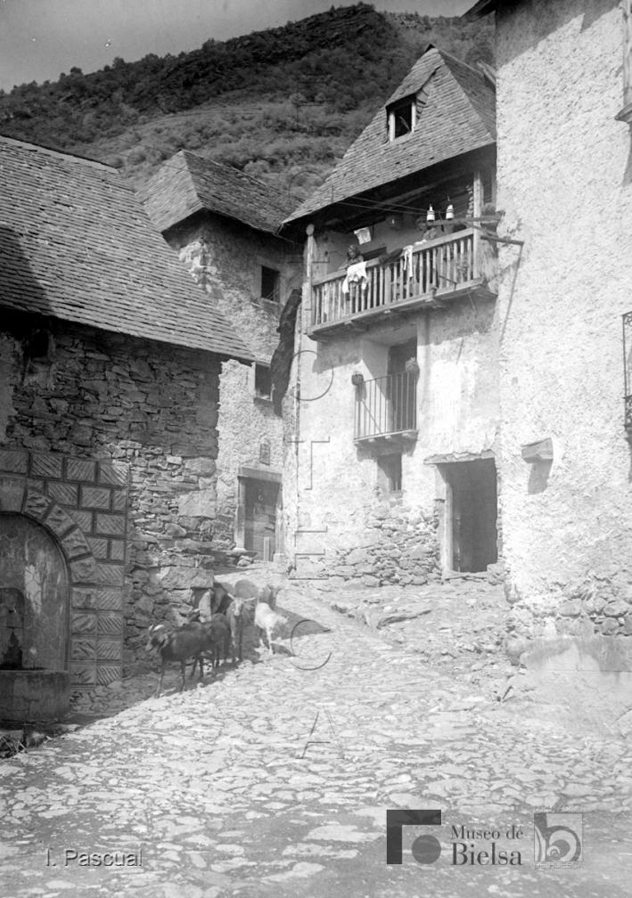 Contenido: Grupo de imágenes de Gistaín realizadas posiblemente entre 1943 y 1945. Sus primeros destinos en la provincia fueron Torla y Bielsa, durante la década de los años 40 realiza un buen número de fotografías familiares, pero también de los pueblos, paisajes y gentes. Ya establecido en Huesca capital, sigue visitando el Pirineo en las décadas de 1950 y 60, dejando un material valioso para estudiar la evolución de los pueblos y paisajes del Pirineo. |