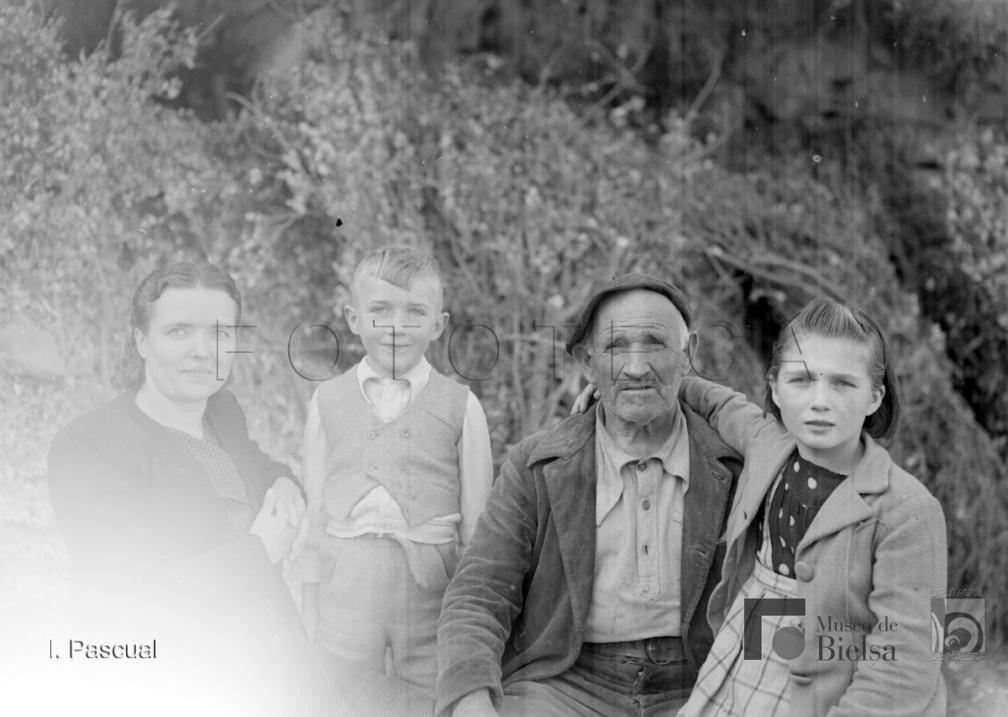 Contenido: Retrato de la familia de Casa Ramonico de Sesa (Huesca). Sus primeros destinos en la provincia fueron Torla y Bielsa, durante la década de los años 40 realiza un buen número de fotografías familiares, pero también de los pueblos, paisajes y gentes. |