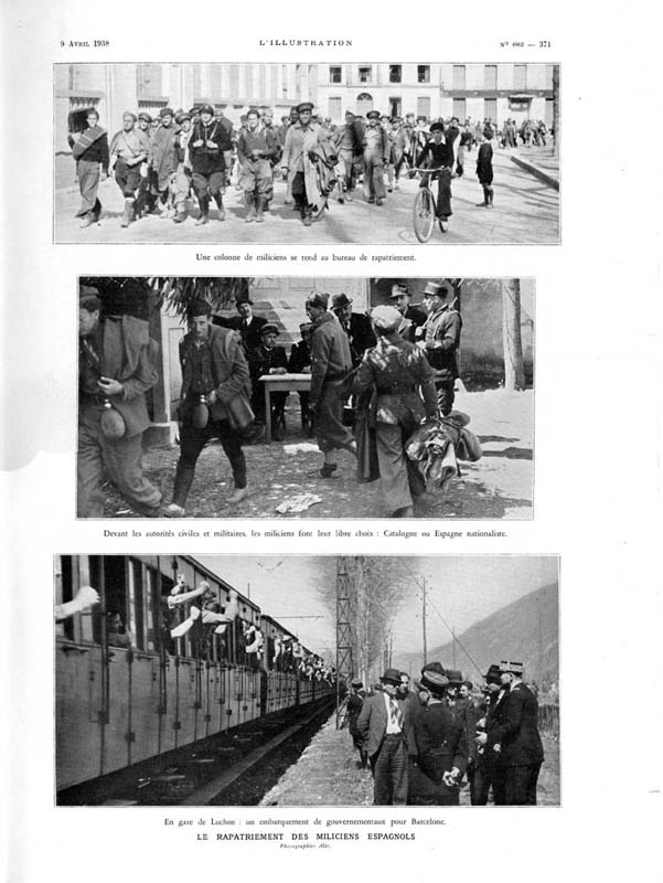 Prosigue con fotografías realizadas por Keystone y Alix de población civil refugiada, del Plebiscito de Toulouse de la 31 División y del embarque de tropas en la estación de Luchon hacia Barcelona, de regreso al frente; hechos ocurridos durante el mes de marzo de 1938.