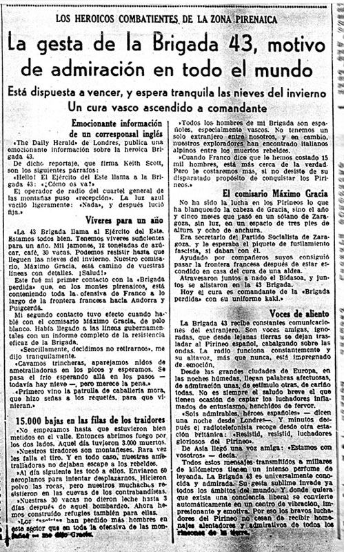 | Contenido: La Vanguardia, nº 23149, 22-05-1938. Contiene una referencia a la resistencia de la 43ª División en el pirineo altoaragonés y sus enfrentamientos con las tropas franquistas. Contiene un informe de la situación efectuado por Máximo Gracia Royo. |