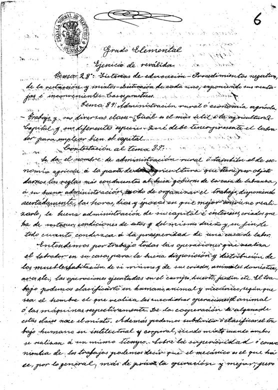 Contenido: Leonardo Escalona Montaner fue maestro y poeta en aragonés. Nació en Bielsa el 6 de noviembre del año 1891, hijo de Salvador Escalona Soláns de casa El Viejo y de Josefa Montaner de Antonio de casa Pochas, era el cuarto de diez hermanos. Pasa algunas temporadas de pequeño en Francia con familiares y su familia lo envía a estudiar a Huesca la carrera de magisterio, estudios que realiza entre 1908 y 1911. En este periodo conoce a Segunda Gracia que también estudia magisterio y con la que se casará. Ejerce en Esplús, Saravillo y Salinas de Sin entre 1913 y 1923. En 1924 casado con Segunda se establece en Benabarre. Ejerce durante tres años en Bielsa a partir de 1928. Tienen dos hijos, Bianor y Gonzalo. En 1931 se trasladan a Albalate de Cinca donde ejercerán los dos maestros hasta el 28 de marzo de 1938. Fallece el 30 de marzo de 1938 cerca de Lascuarre cuando, junto con Segunda y Bianor y procedentes de Albalate de Cinca, intentan pasar a Francia para juntarse con Gonzalo y el resto de la familia de Bielsa que ya había pasado la frontera unas semanas antes. Ejercicios de Revalida, la del Grado Elemental realizado en el año 1909 y la del Grado Superior del año 1911. |