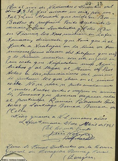 Pu?rtolas Falceto, Tom?s; Pallaruelo Castillo, Ram?n; Brun Garuz, Mart?n; BERNAD BERNAD, SANTIAGO; Toro, Celso; Santaliestra, Pedro; Gistau Castillo, Ram?n; Agraz Pardina, Enrique; Castro, Joaquin; Campo Ses?, Pascual; Mercad?, Luis; |