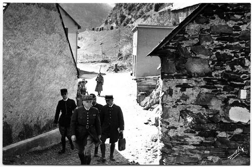 | Descripción: Visita del general francés Chauvin del 18ª Corps d’Armée, al valle del Aure para supervisar el despliegue de seguridad de la frontera. La visita se produjo el 8 de abril de 1938 y estuvo en las poblaciones de Arreau, Saint-Lary y Aragnouet.