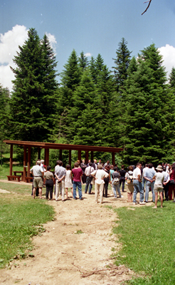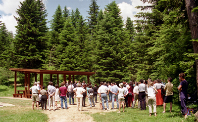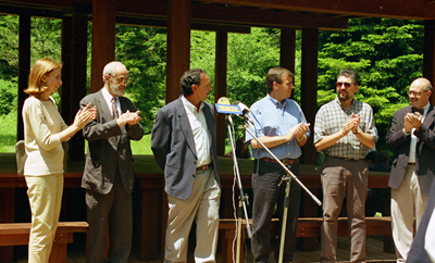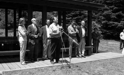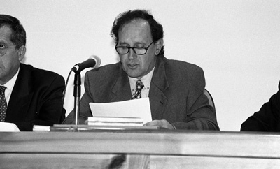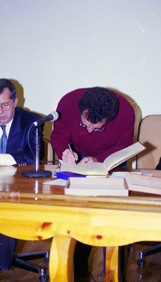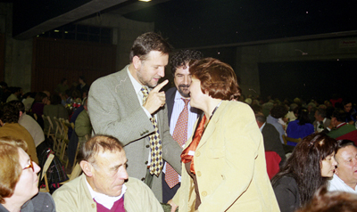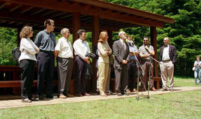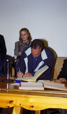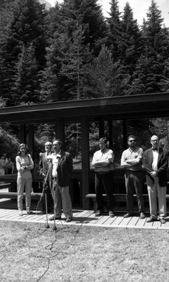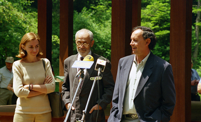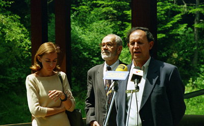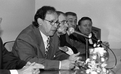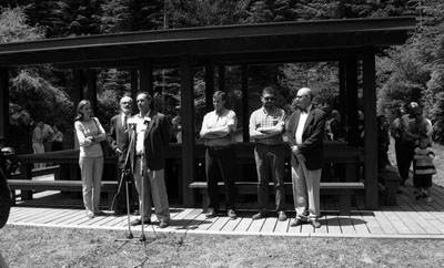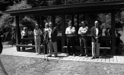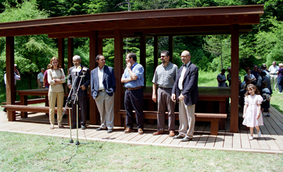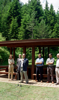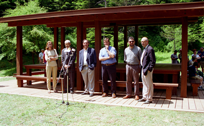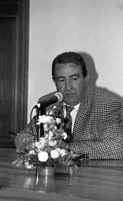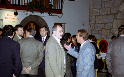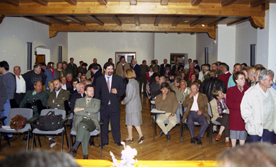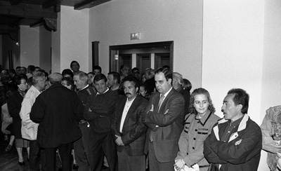 | Descripción: En pie, el gobernador Gil Sastre durante su intervención; detrás y sentados, algunas autoridades oficiales, entre los que está, con traje oscuro y pelo cano, José Méliz, en representación del Ayuntamiento de Bielsa; entre el público, José Luis Méliz, Pili Solans, Encarna y Encarnita Solans, Manuel d... |