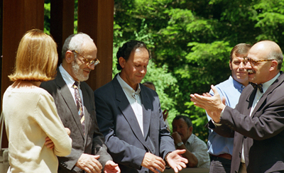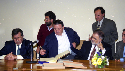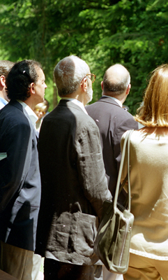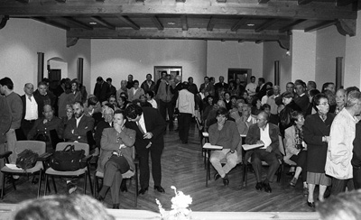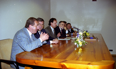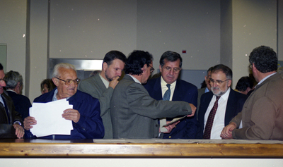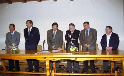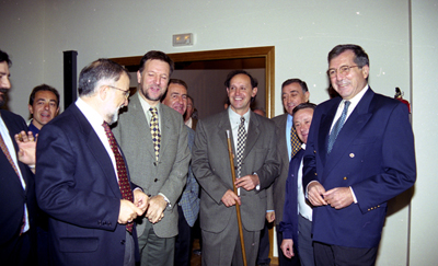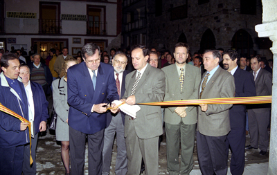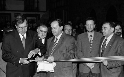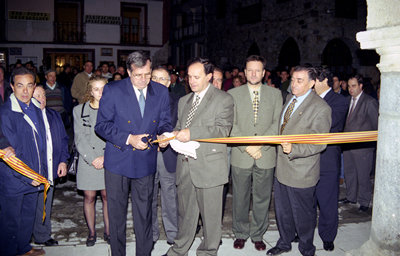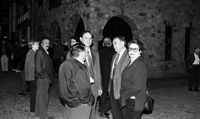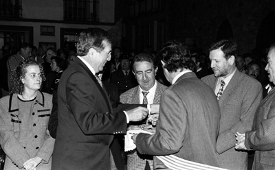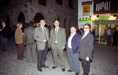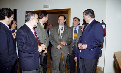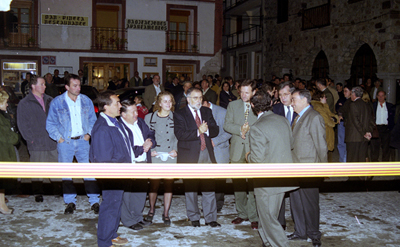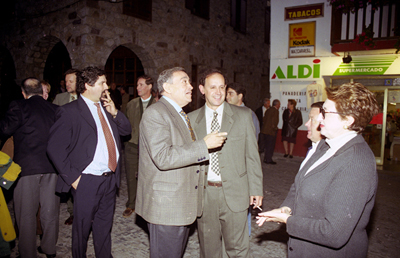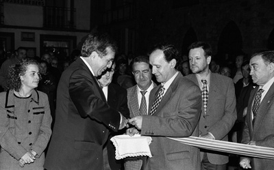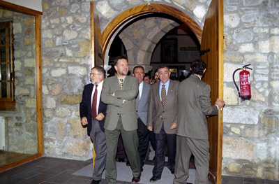 | Descripción: En el centro, con bastón y gafas, el gobernador Gil Sastre y el alcalde Antonio Mazcaray. entre el público que les rodea, otros representantes municipales.... |