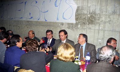 | Descripción: Los comensales son Jesús Fantova, L. Escalona, Joaquín Mur, y A. Mazcaray.... |