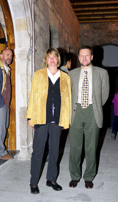 | Descripción: María Ángeles Pañart y J. Mur, con traje belsetano, dan las primeras palabras de bienvenida al obispo.... |