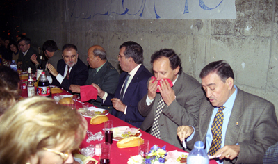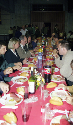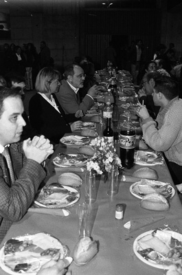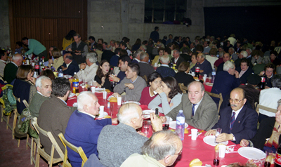 | Descripción: Entre los comensales, Martínez, de casa Arturo, Juan Ferrer, Joaquín y Tolomeu de Espierba.... |