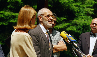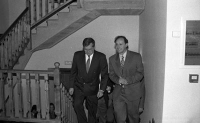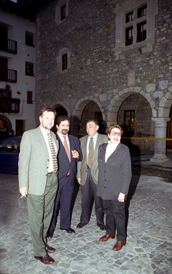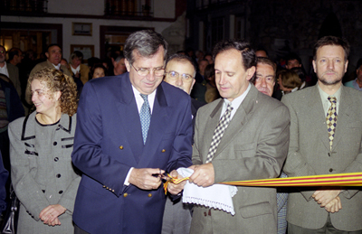 | Descripción: Cantero Cuadrado habla con los dos niños vestidos de belsetanos encargados de dirigirle las primeras palabras de bienvenida. Se trata de M. A. Escalona y J. Mur.... |