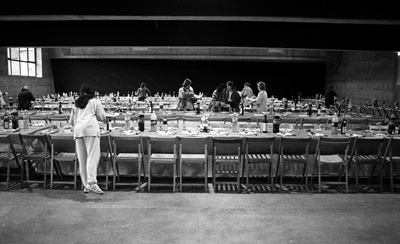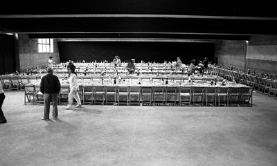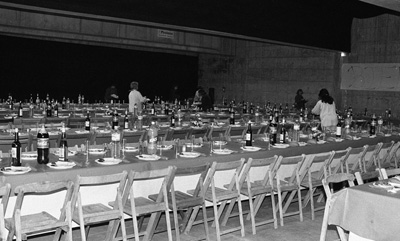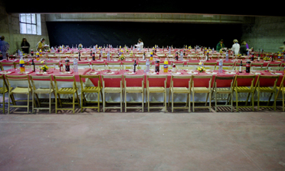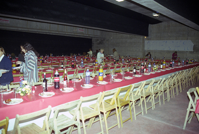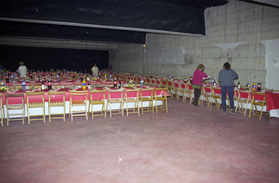 | Descripción: Teniendo como fondo la mesa presidencial, aparecen bailando Pilar y Ana Méliz, Pilar Mur, Loli Vidaller, M. C. García y Margarita Casasnovas. El baile se debió realizar en la sobremesa.... |