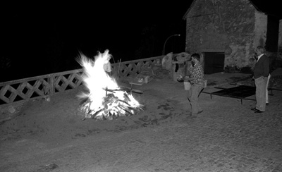 Descripción: Baile que siguió a la intervención de las autoridades. Las mujeres que bailan son Leontina Barta e Irene Gistau, de casa Sastremajo. Entre el público se distingue a Riazuelo, Roquito, Ramón, Toñito Escalona y José L. Martín.... |