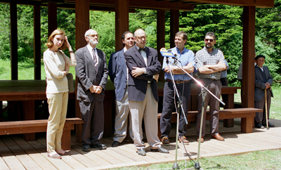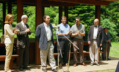 De izquierda a derecha, aparecen José Méliz, el sacerdote de Bielsa José Antonio Lalueza, Cantero Cuadrado, representante del Gobierno Civil, ... |