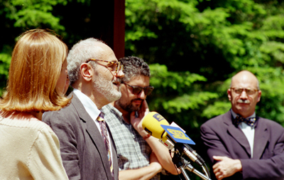 | Descripción: Entrevista a uno de los homenajeados junto a una ametralladora de las usadas durante la Guerra Civil... |
