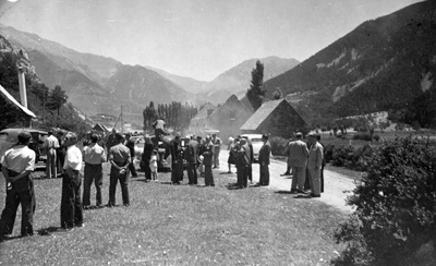| Descripción: Por su contexto, la fotografía parece haber sido tomada durante la inauguración del sanatorio antituberculoso de Pineta.... |