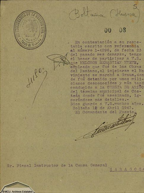Descripción: La Causa General fue ordenada por Decreto de 26 de abril de 1940 del Ministerio de Justicia, con el fin de depurar las responsabilidades de las actuaciones de los republicanos durante la guerra civil española.